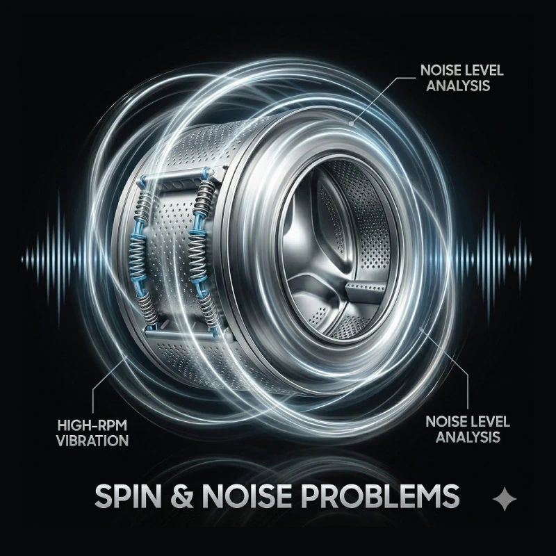Our service includes checking spin issues, excess vibration, loud noise, imbalance, and other faults affecting normal washing machine operation.